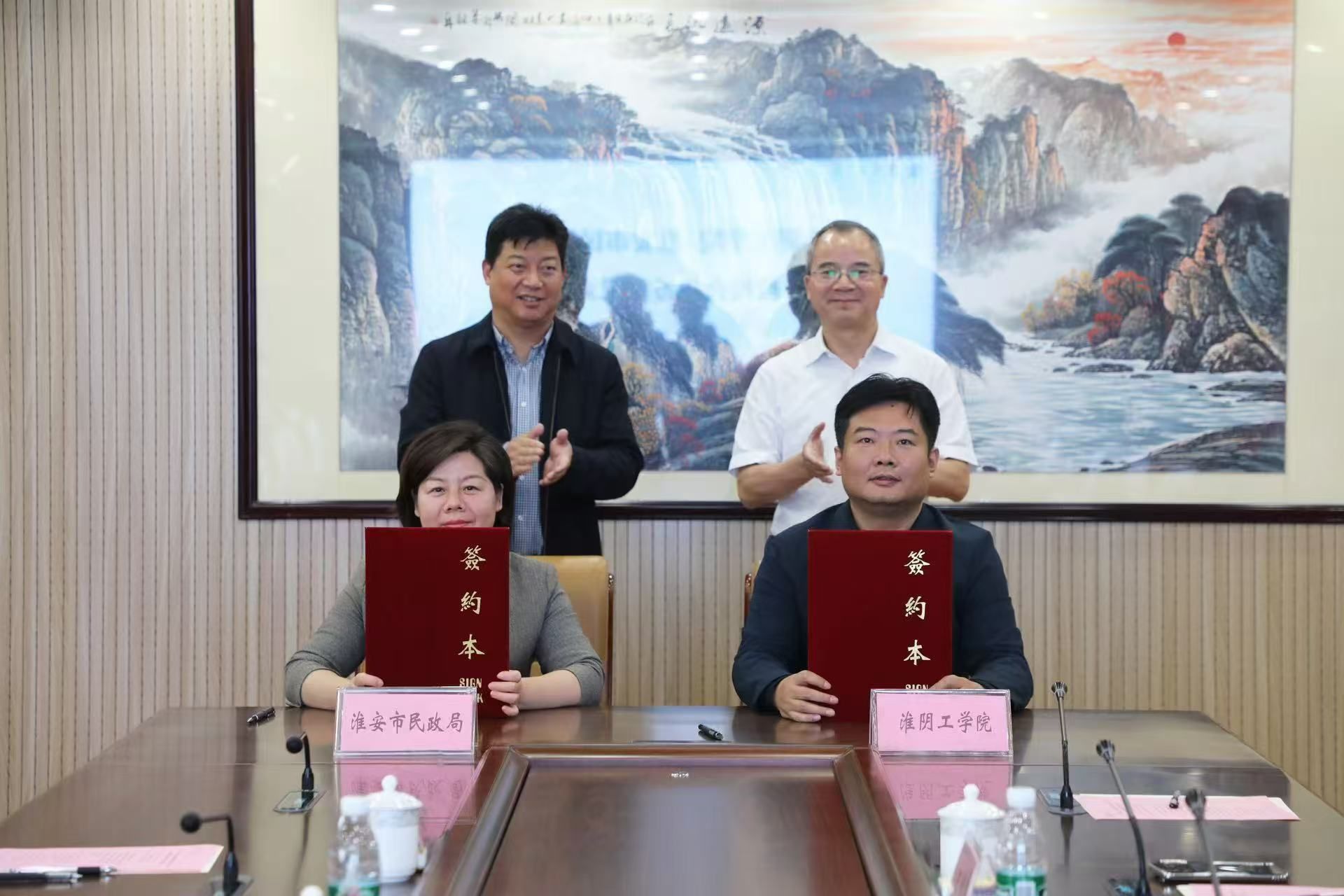 高尚兵与李萍分别代表公司和淮安市民政局签署共建协议。