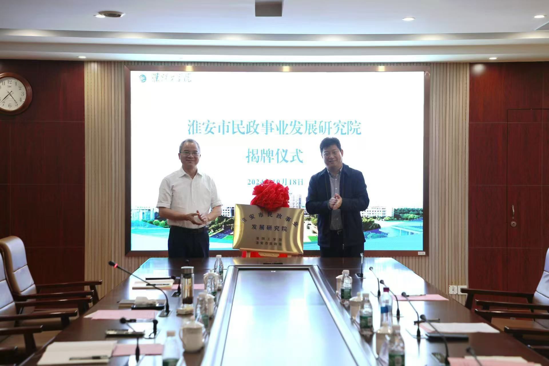 郑锋和邱华康共同为“淮安市民政事业发展研究院”揭牌。