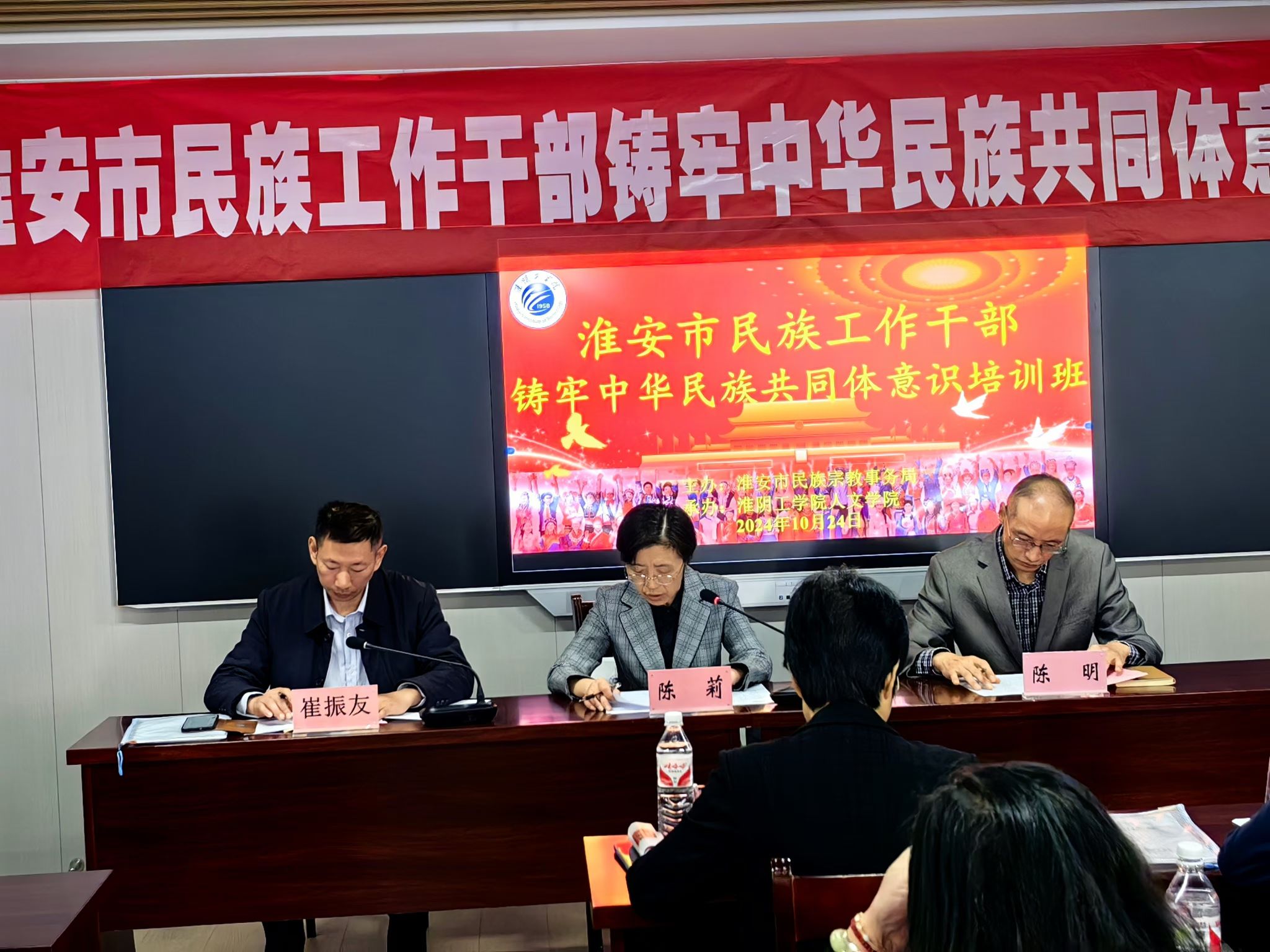 为深入贯彻落实中央和省市委民族工作会议精神,积极推动铸牢中华民族共同体意识各项工作更好落地落实。10月23日上午,淮安市民宗局在主楼1604房间举办全市民族工作干部铸牢中华民族共同体意识开班仪式。淮安市民宗局副局长陈莉进行动员讲话、淮安市民宗局民族处处长崔振友主持开班仪式。