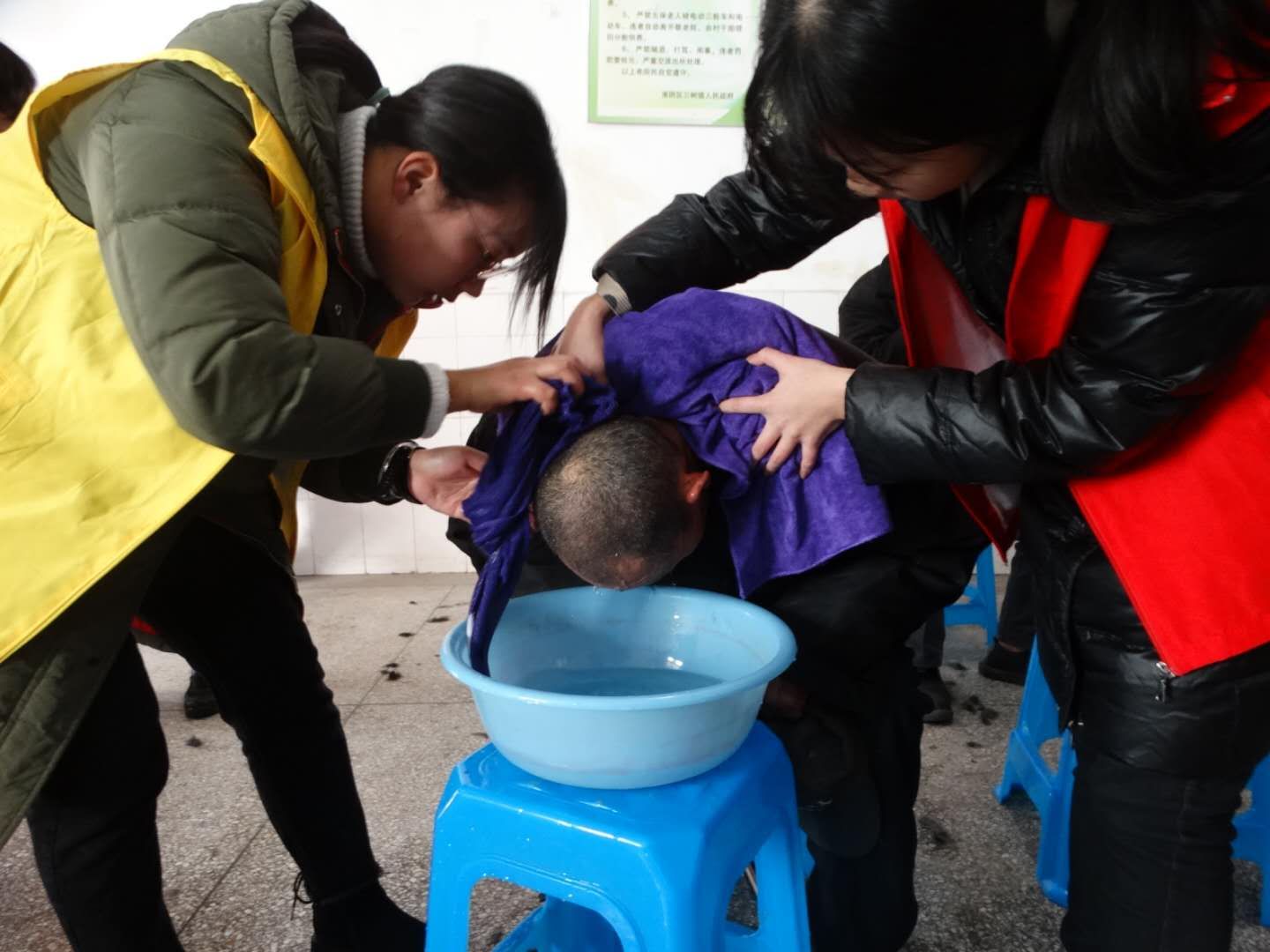 在一系列常规测血压、心理疏导、理发、修脚、采耳、打扫卫生等常规活动之后,迎新年文艺节目正式开始。