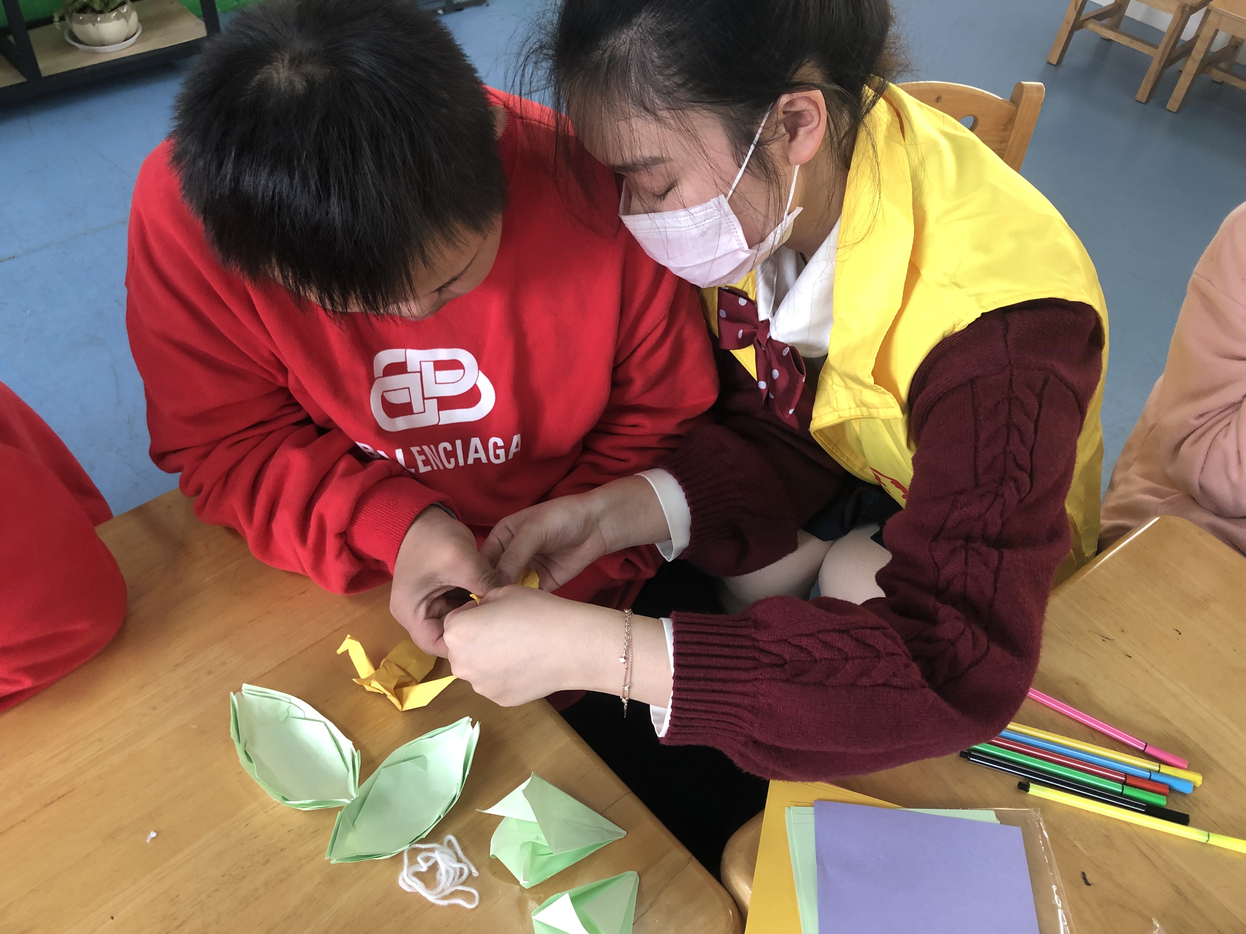 接下来志愿者们又教小朋友们用彩纸折叠漂亮的造型。五彩缤纷的纸张吸引了小朋友的好奇心,志愿者们循循善诱,认真指导,千纸鹤、小青蛙、小狐狸惟妙惟肖、跃然桌面。志愿者们还给小朋友们精心准备了小礼物。福利院的小朋友们也为志愿者们带来了舞蹈表演,虽然舞步稚嫩,动作青涩,但是小朋友们却一丝不苟,认真对待,充满童真的表演赢得了阵阵掌声。