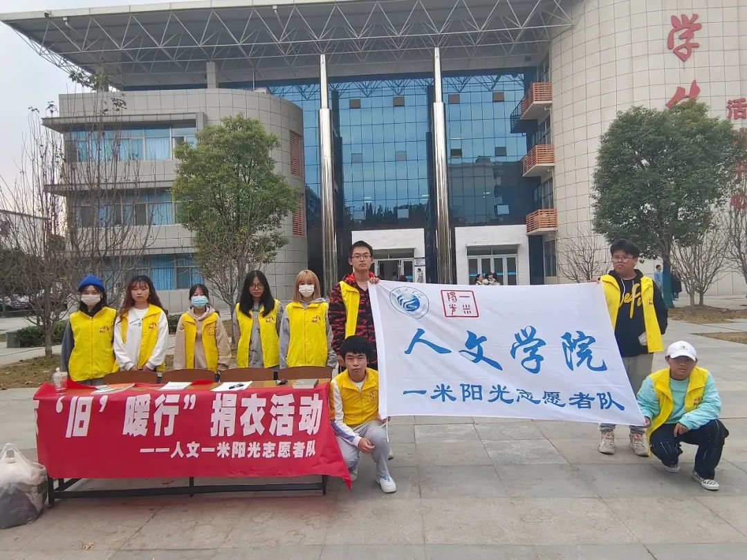 随着冬日的来临,天气骤冷,为了给贫困地区的孩子们带去温暖,一米阳光志愿者队在11月19、20日在校内开展了"爱不闲置,’衣’旧暖行”捐衣活动。一米阳光志愿者队各小队分组合作,配合融洽。