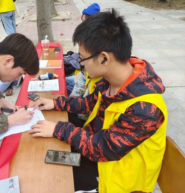 随着同学们的踊跃参加,志愿者们接过同学们手中包裹,