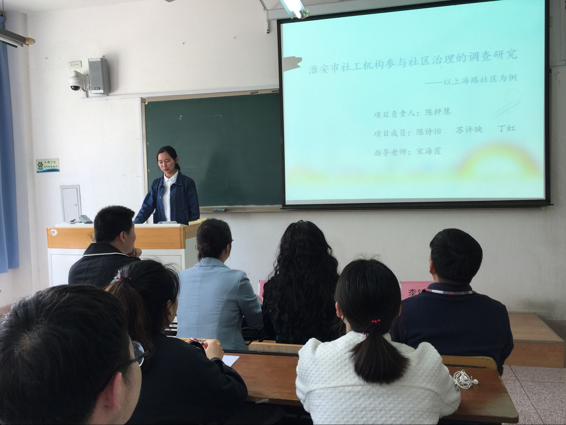 参加本次验收的共有来自社会工作、秘书学和公共事业管理三个专业的18个项目,现场分为现场陈述和评委提问两个环节。各组项目负责人逐一汇报团队的研究项目,每一位进行汇报的代表都充满自信,激情昂扬。在现场提问环节,严肃的会场氛围使答辩者略显紧张,但评委们切中时弊的评论使各团队收获颇丰。最终,所有团队都顺利完成汇报。
