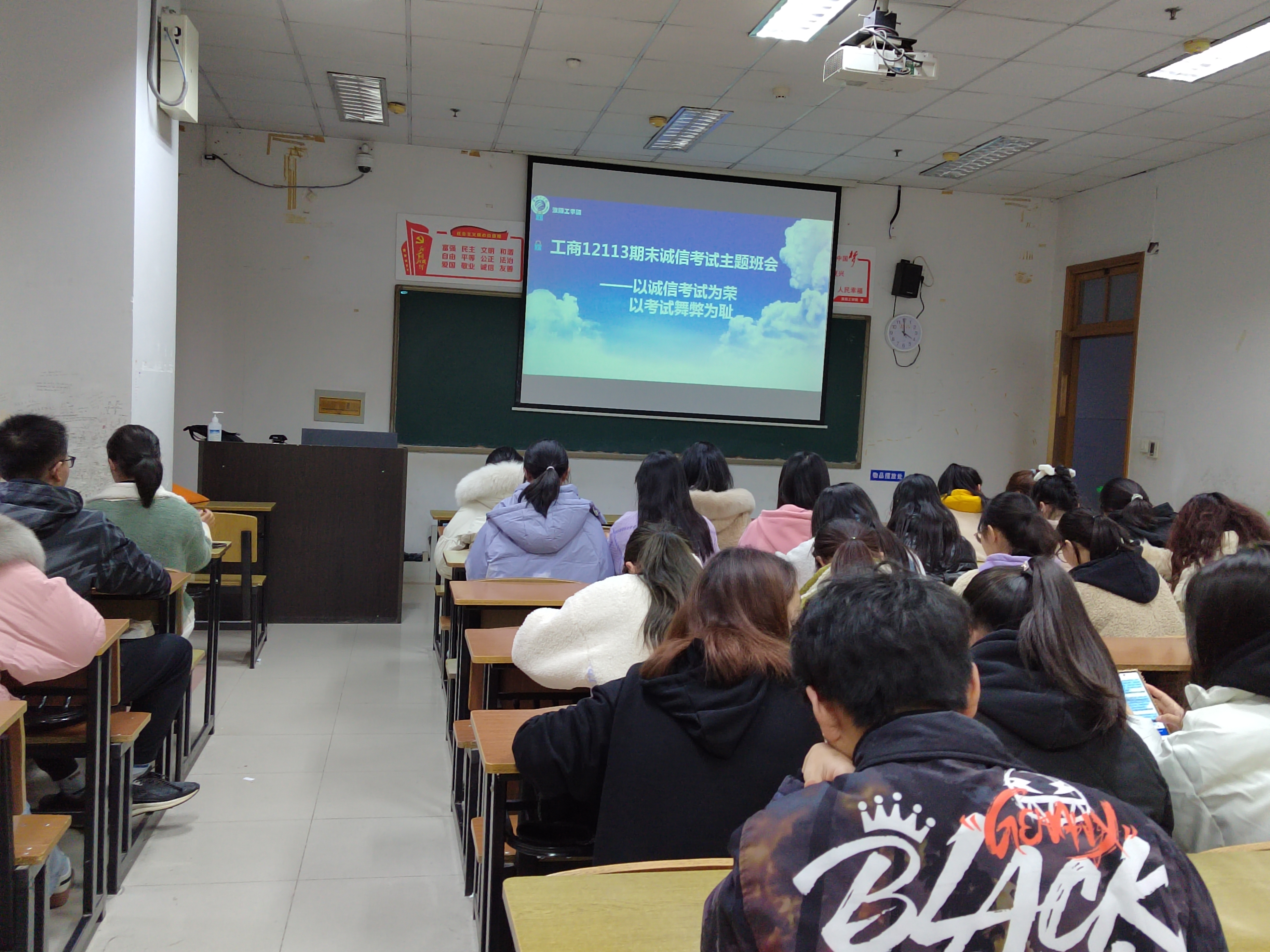 班会由工商12113班班主任主持召开,老师认真严肃给同学们讲了考风考纪是重要性,“原浊者流不清,行不信者名必耗”,诚信取人,是中华民族最为优秀的传统之一。培养同学们自强自律的精神、刻苦学习的作风,以诚信考试为荣,以考试舞弊为耻,坚决抵制考试舞弊的不良习气,自觉遵守考场纪律,杜绝各种作弊行为,净化考场环境,展现自我的真实水平,用真实的成绩证明自己的实力。