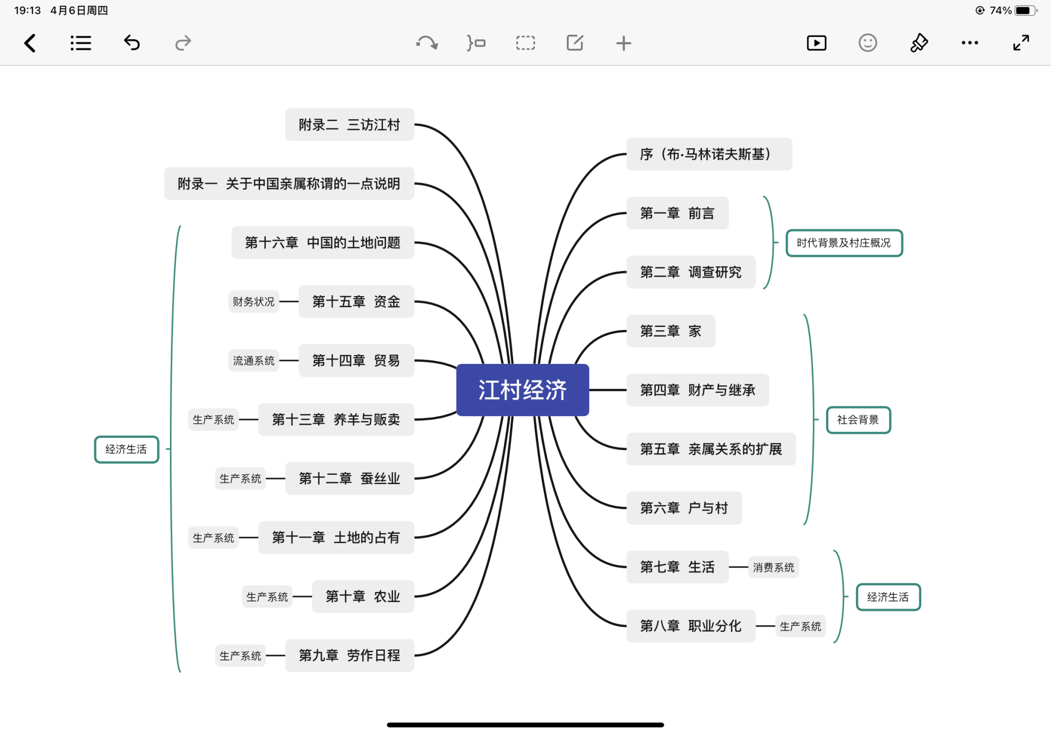 《江村经济》是由费孝通先生写的关于中国社会调查方面的学术著作,描述中国农民的消费、生产、分配和交易体系的书,是根据对中国东部太湖东南岸开弦弓村的实地考察写成的。本书结构清晰,第一部分,第一、二章,重点介绍江村的时代背景和地理情况,第二部分,第三——六章,重点讲江村的社会背景,第三部分,第七——十六章,重点描述江村的经济生活。
