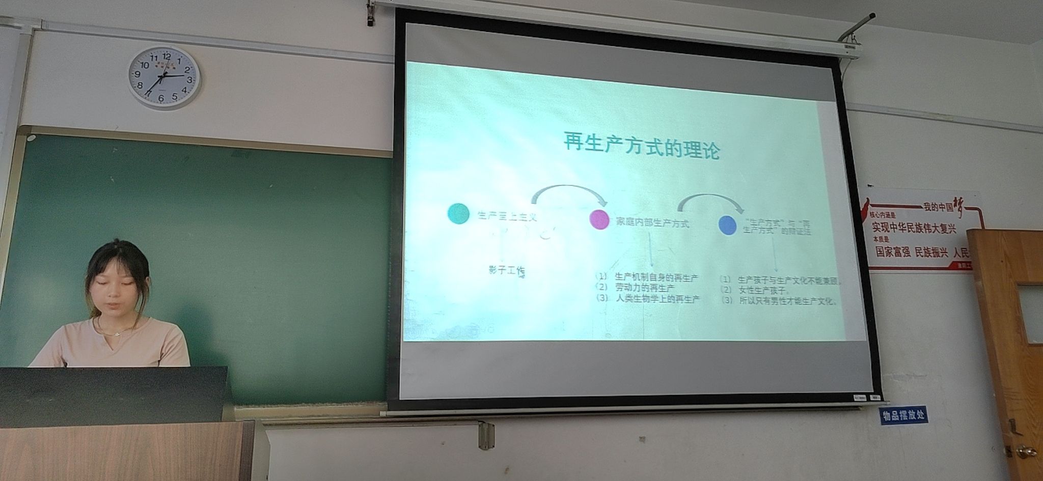 谢梓琳概述了第三章的家务劳动,最大贡献就是发现了家务劳动本身。首先阐释了劳动概念,家务劳动是劳动。然后明确了压迫女性的物质基础。当阶级因素逐渐被削减家务用人成本增加后,那家庭家务劳动就逐渐变成了由家庭主妇来做,同时没有报酬,不被承认。最后谢梓琳通过对第四章的分享,得出结论:女性的受压迫,其实是有着物质基础的作为无偿劳动的家务劳动。父权制从其劳动的性别原理中获得利益,以女性阶级开展的劳动物质基础的变革 才是女权主义革命的目的。