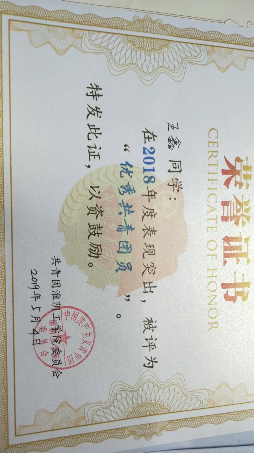 2017.12 优秀志愿者 中国共产主义青年团淮安市委员会