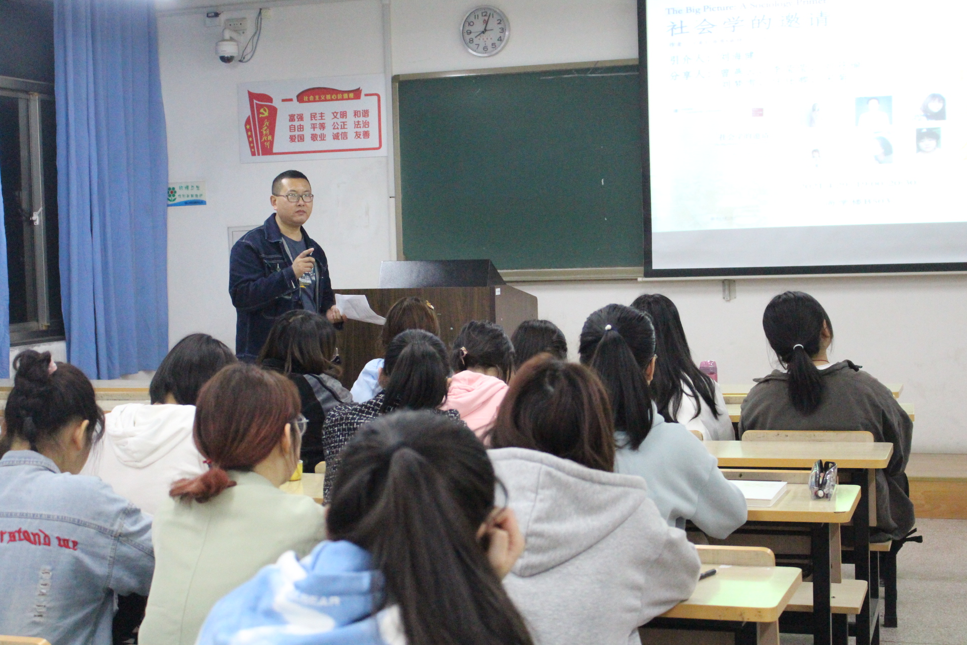 六位汇报人完成汇报后,刘海健老师做了总结与评论。刘老师肯定了分享人对此次读书会的认真准备,指出了各位分享人的可圈可点之处。尤其是刘梦雪、李莹莹等同学能就课程学习、日常生活的案例与著作内容进行比较分析,体现了较好的理解能力。尔后,刘老师就阅读著作请现场同学进行交流。赵晶晶、李梓英豪、李莹莹等同学发表了自己的读后感,并就如何读书、如何转化吸收等问题进行了交流,刘老师对这些问题进行了一一回应。尤其是对李莹莹同学提出的“如何将社会学的想象力应用于解决员工生活中的难题”这一问题,刘老师回应道,社会学的想象力是一种“心智品质”,可能不会在经济上给人们带来立竿见影的效果,但可以锤炼心性,夯实基础,对以后的职业发展来说,其意义是逐步显现的。就目前本科阶段的学习来说,首先做到博览群书,才能做好分内之事,在学年论文、毕业论文和社会实践中凸显专业素养。读书会最后,刘老师希望同学们能够重视读书会,打通专业界限,养成好阅读习惯,为大学四年留下抹不掉的印记。