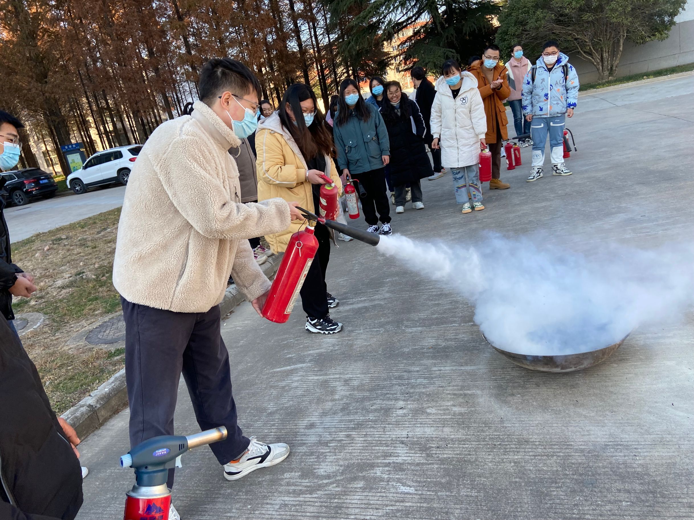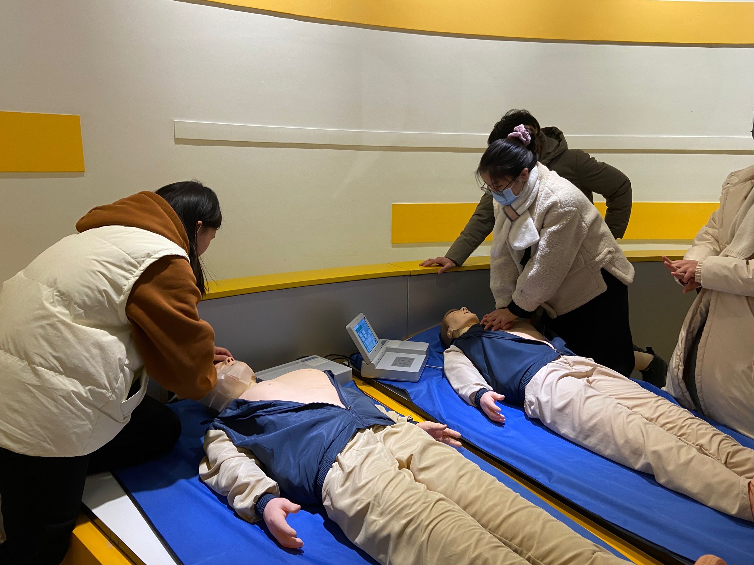 在技能训练过程中,依次组织安排了心理危机预防与干预、心肺复苏技能训练、消防安全技能训练、淮安市民防馆灾难体验与预防技能训练等内容。