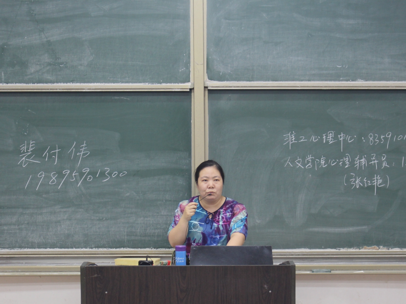 讲座伊始,张红艳老师向同学们介绍淮安的历史文化、旅游景区等,成功激起了新生们对淮安风景名胜的兴趣和对大学美好生活的憧憬。紧接着,张红艳老师提及新生入学时可能存在的问题,譬如就习环境的改变、恋爱观、金钱观和人际交往等方面,在耐心的分析下还穿插了自己的生活趣事,提出了高效的合理情绪疗法,在调节新生心理的同时又让同学们更直观更明确地了解解决问题的手段。